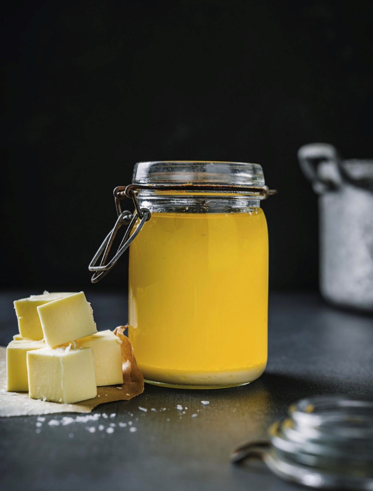 Hjemmelaget Ghee smør – klaret smør laget av høykvalitets meierismør. Nøtteaktig, rik smak – perfekt til steking, baking og matlaging.